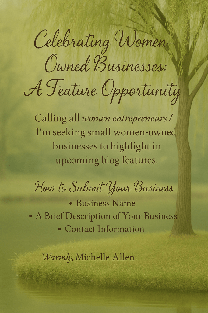 Are you a passionate, women-owned business looking for a chance to share your journey and inspire others? I’m Michelle Allen, and I run Whispering Willow—a blog dedicated to personal storytelling, poetry, and uplifting women in business.