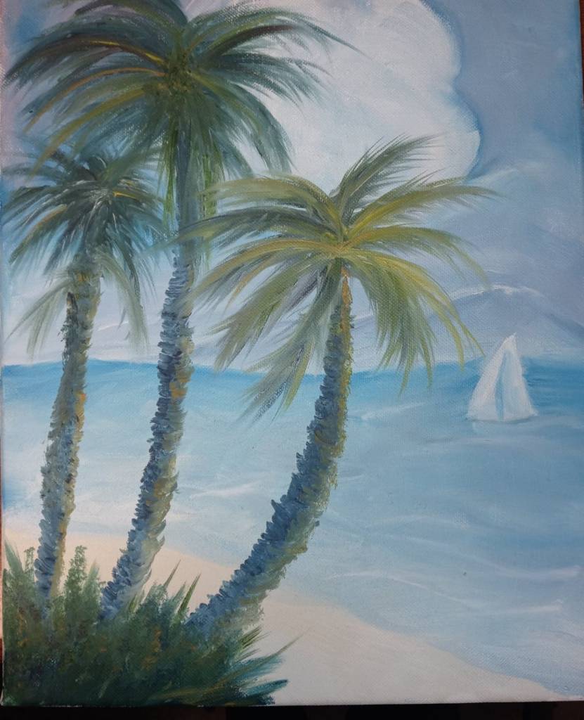 On the shore, three steadfast palms bow to the fading light, their silhouettes etched against the sky like silent guardians of time’s unhurried rhythm. The waves murmur a rhythmic lullaby, carrying distant echoes of adventure and solitude, inviting the soul to drift, to breathe, to let go.