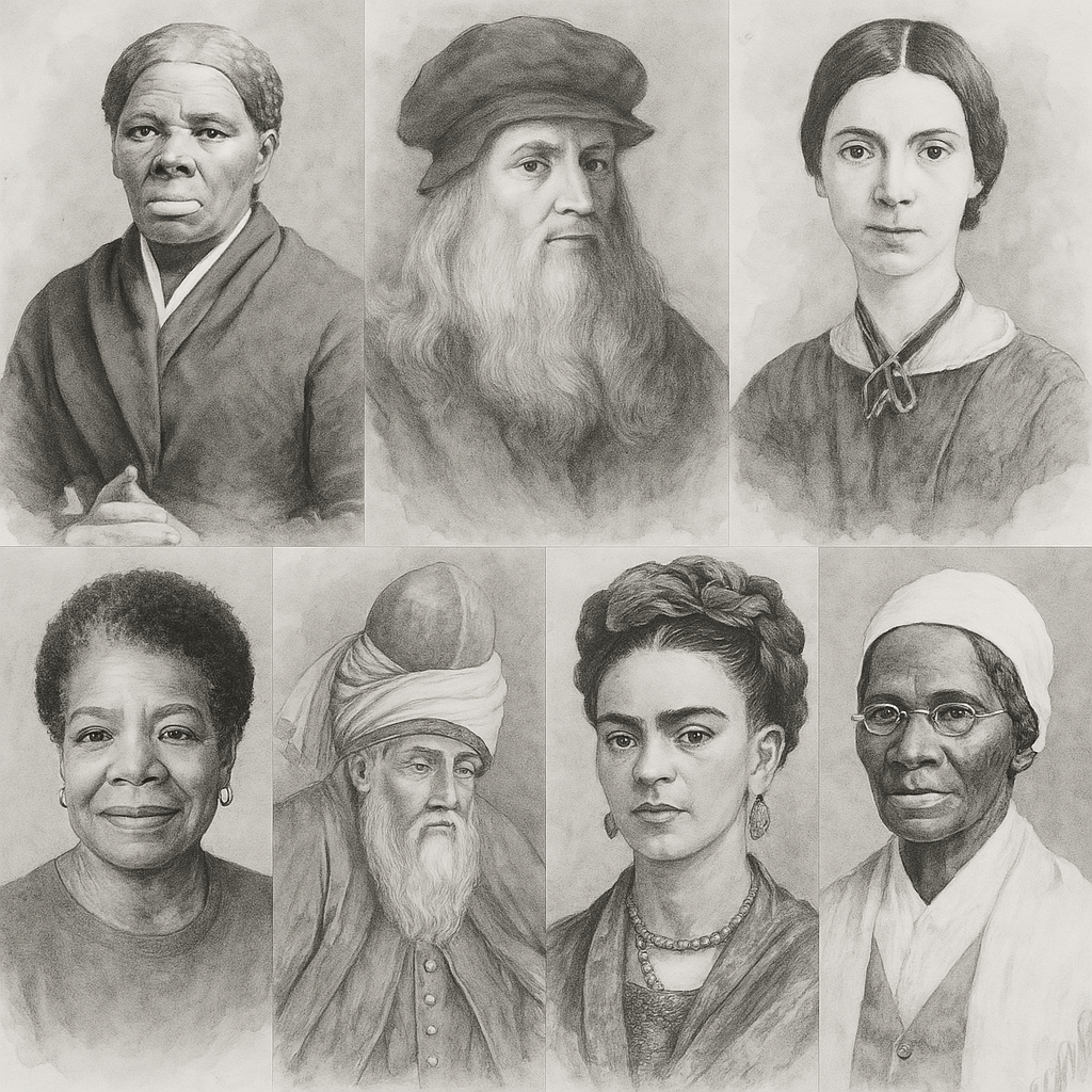 When asked to name a favorite historical figure, I find it impossible to pick just one. My mind doesn’t rush to conquerors or kings, but those who quietly—and resolutely—reshaped the world through love, vision, and unwavering resilience. My heart and imagination reach for a constellation of souls—visionaries, rebels, poets—each one whispering a different kind of truth into the fabric of my life and writing.