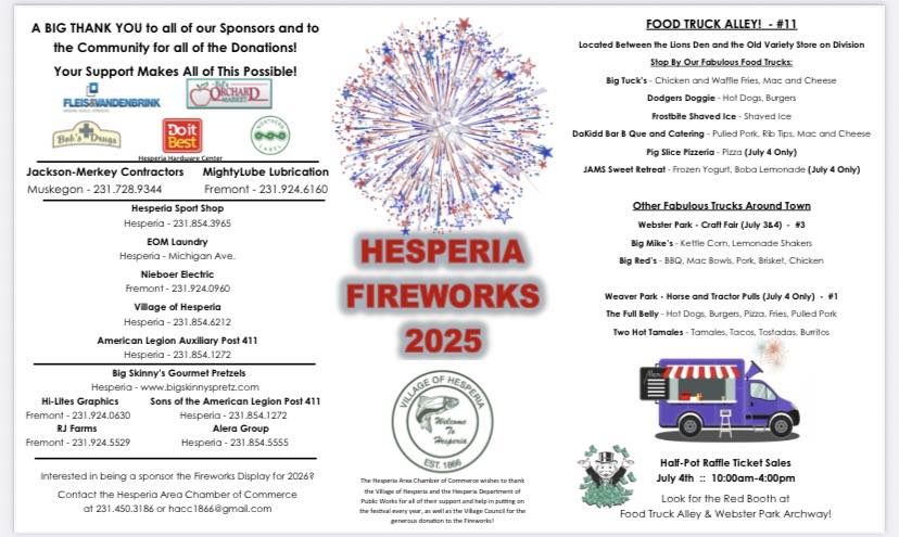 #HesperiaFamilyFunFest #MichiganEvents #SmallTownCharm #EchoesOfTheWillow #FireworksFestival #SupportLocalMI #FoodTruckAlley #HorsePulls #AxeThrowing #ArmWrestlingShowdown #ParadeCelebration #CommunityMatters