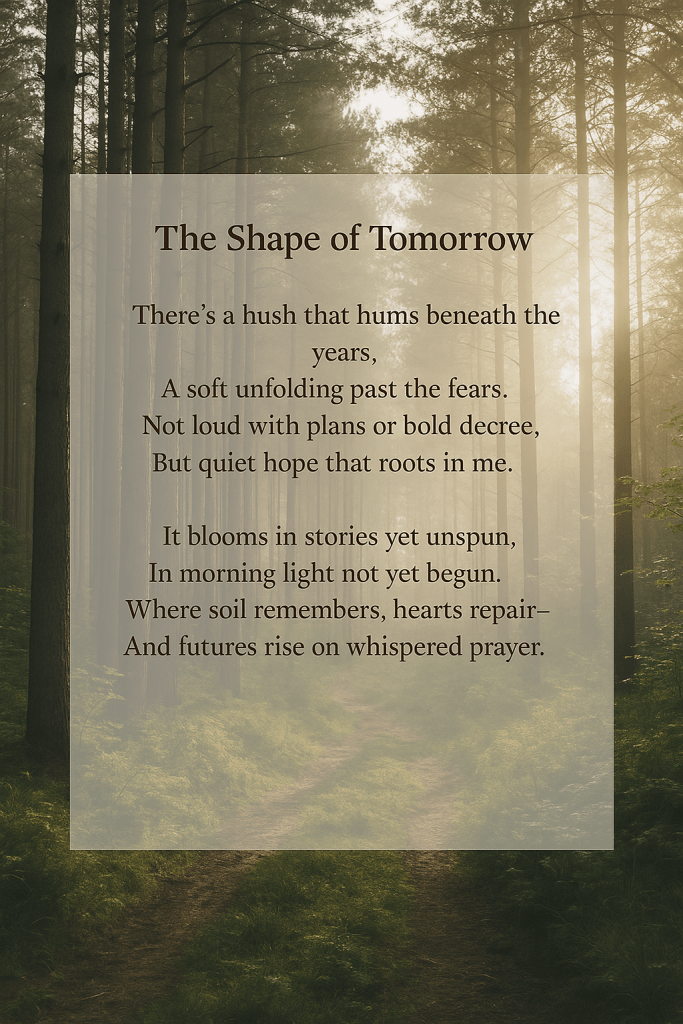 🌿 What are you most excited about for the future? Take a breath, take a moment, and let it rise like morning light through the pines. I’d love to hear what quiet hope or brave beginning is blooming in your life. Drop it in the comments—or simply whisper it to the wind. Either way, it matters.