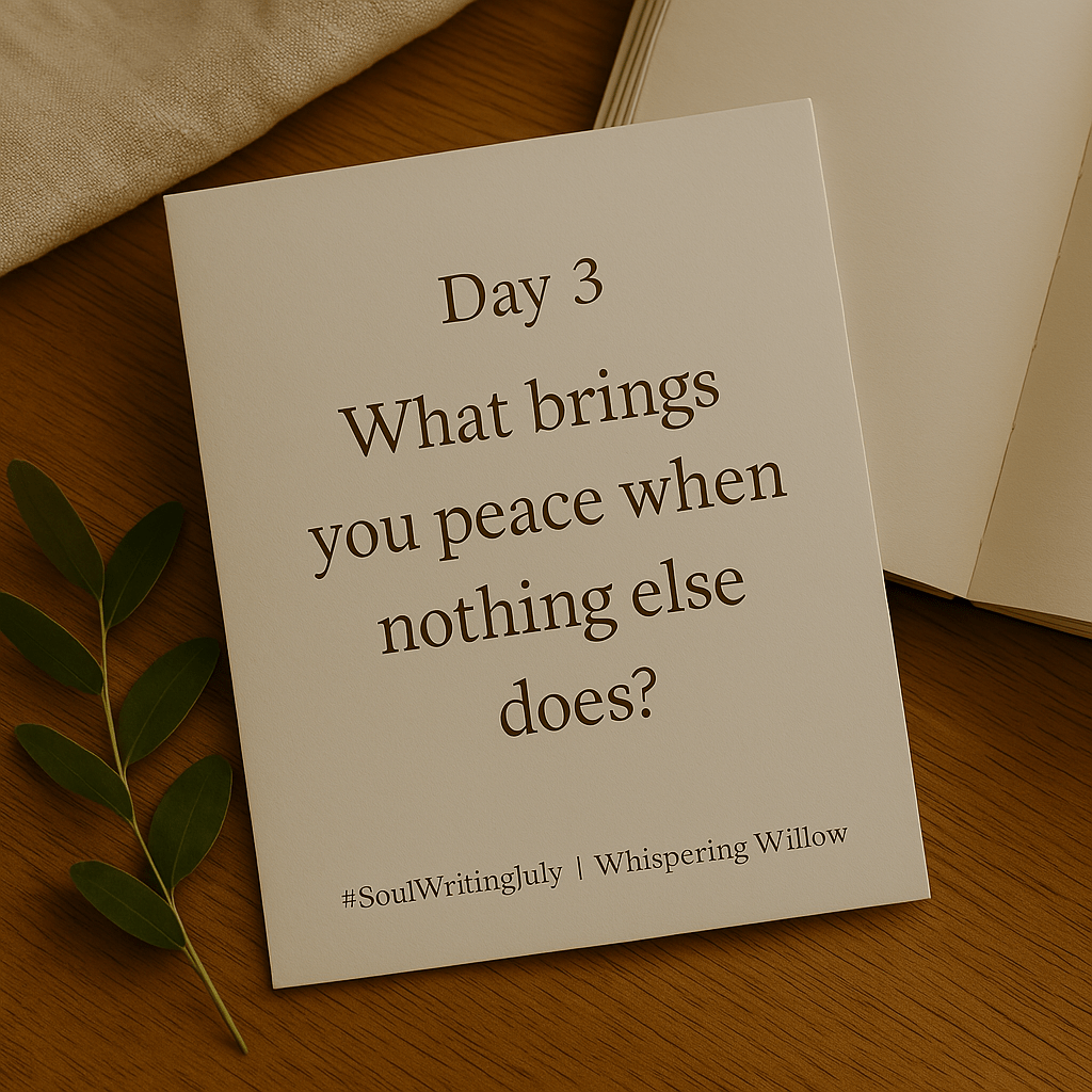 Prompt 3: What brings you peace when nothing else does? 🌙 Let’s write about peace today. Not perfection or control—but quiet, sacred stillness. What anchors you when the noise is too loud? #SoulWritingJuly #WriteForPeace