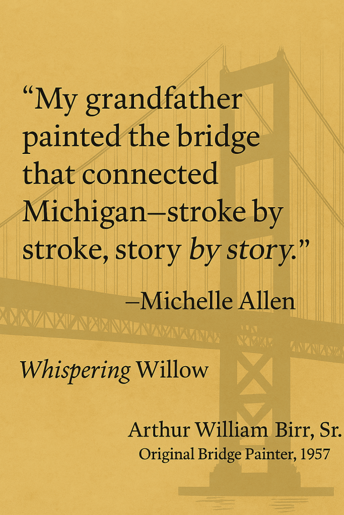 Among those workers was my grandfather, Arthur William Birr, Sr., one of the original painters of the bridge. While the engineers drew the blueprints and the derricks raised the towers, it was men like my grandfather who gave the bridge its skin—layer by layer, coat by coat, braving wind, height, and weather to bring color and protection to the structure that would unite Michigan’s peninsulas.