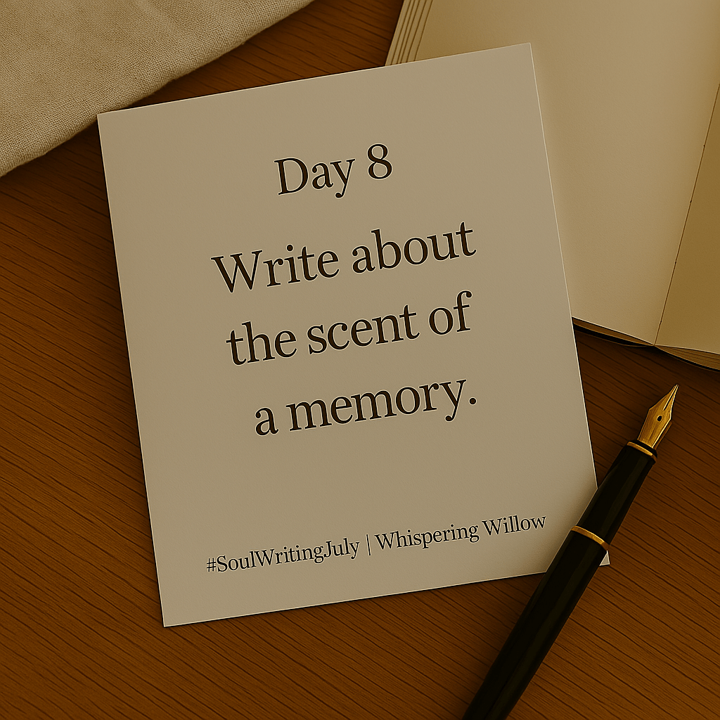 Prompt 8: Write about the scent of a memory. 🌬 Scent is a powerful time machine. What fragrance sends you tumbling backward—to a kitchen, a loved one’s scarf, or a childhood summer day? Breathe it in and write what it brings. #SoulWritingJuly #ScentsOfMemory