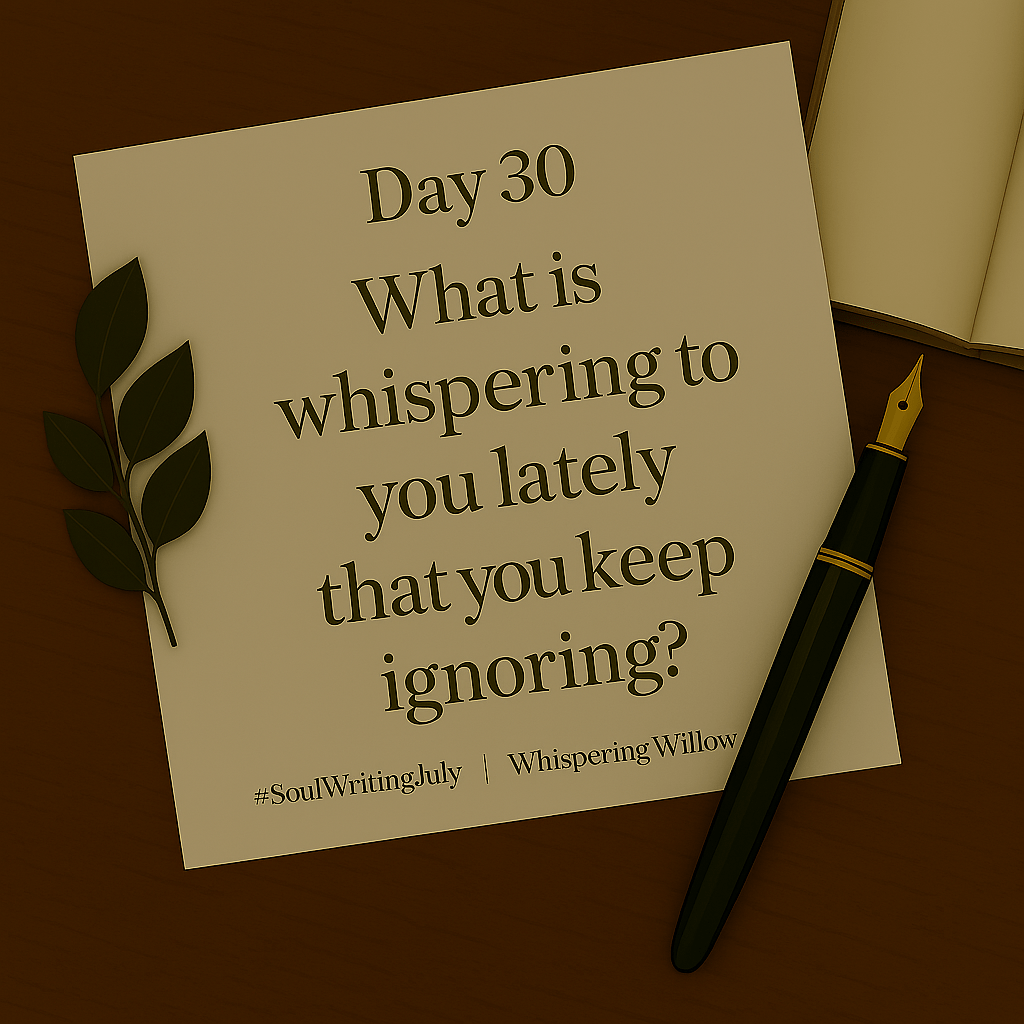 Prompt 30: What is whispering to you lately that you keep ignoring? 🌾 Our intuition often arrives as a whisper, not a shout. What quiet longing or inner truth have you brushed aside? Let it speak today. #SoulWritingJuly #ListeningInward